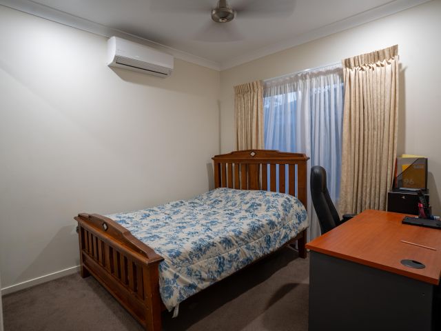 4 spacious bedrooms, including 2 with private ensuites. Separate study/home office – perfect for working or studying from home. Third bathroom plus separate toilet for added convenience. Open-plan living and dining flowing to an undercover outdoor area. Stylish kitchen with quality appliances and ample storage. Solar system with battery storage – reduce energy bills and increase efficiency. Fully air-conditioned throughout for year-round comfort. Low-maintenance yard, ideal for relaxed living or the busy family. Located in the vibrant, family-friendly Harris Crossing community. 673sqm block with low-maintenance yard and room for kids or pets. Situated just minutes from schools, shops, and Townsville’s key transport routes, this home offers lifestyle and location in one smart package.