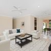Inside, the home offers a spacious and functional layout, highlighted by a large kitchen featuring a ceramic cooktop, under-bench oven, and a breakfast bar servery, ideal for casual meals and everyday living.